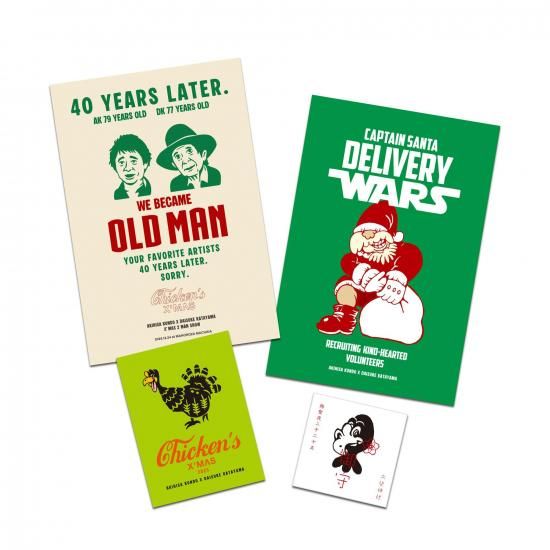 イラストをdaisuke katayamaが、デザインを近藤晃央が担当したコラボクリスマスグッズ。ポストカード2枚と、ステッカー2枚のセット。ステッカーはスマホケースにも入るサイズです。